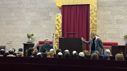 Warum sind so große Rollen hinter einem Vorhang? Warum sieht der Zeigestock, mit dem man die Tora liest, wie eine Hand aus? Diese und viele andere interessante Aspekte des Judentums waren Teil beim Besuch der 2. Klasse der Grundschule der DSG in der Gil-Synagoge in Eaux-Vives. Rabbi Nathan Alfred führte die Kinder auf ansprechende Weise in das Leben und den Gottesdienst der jüdischen Gemeinde ein.